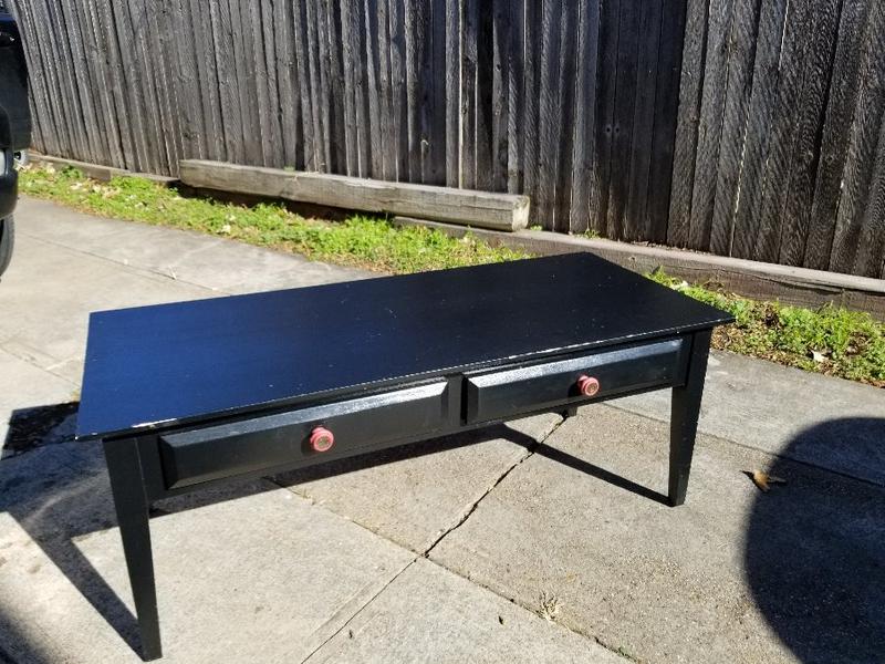 And this is a modern coffee table which made from wood with a size of 37 inches by 21 inches by 18 inches.