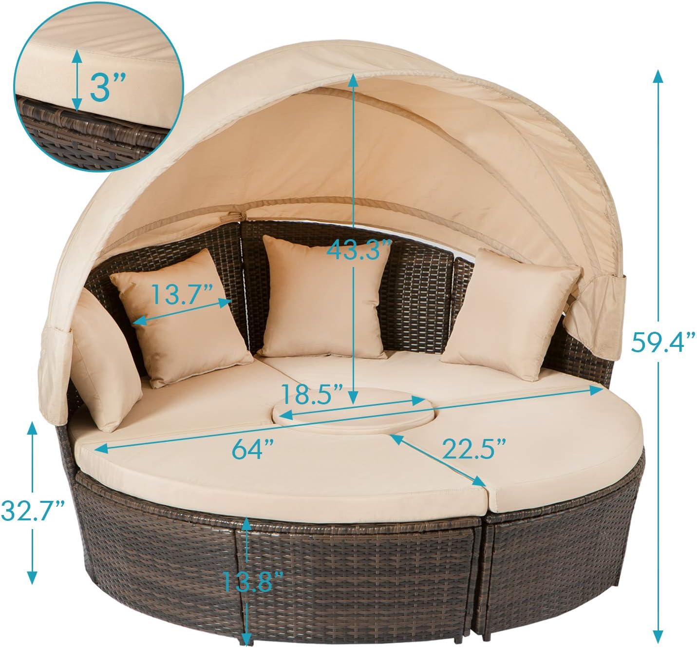 This outdoor round daybed comes with a retractable canopy and reconfigured structure for multipurpose use. This sturdy outdoor daybed boasts a smart solution to keep curtains from flapping in the breeze, anchoring the bottom of each one to adjustable poles. Suncrown outdoor patio round daybed with retractable canopy, brown wicker furniture clamshell sectional seating with washable cushions. This unique piece provides plenty of space for 2 with plenty of extra for cuddling. A great choice for hotels as well as homes.